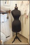 Een wespentaille paspop, omvang 55 cm en tevenslange rok model.Prachtige donkere stof, een plaatje.