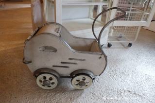 Giraf ,Poppenwagentje , Lila spitzen en witleren Slofjes